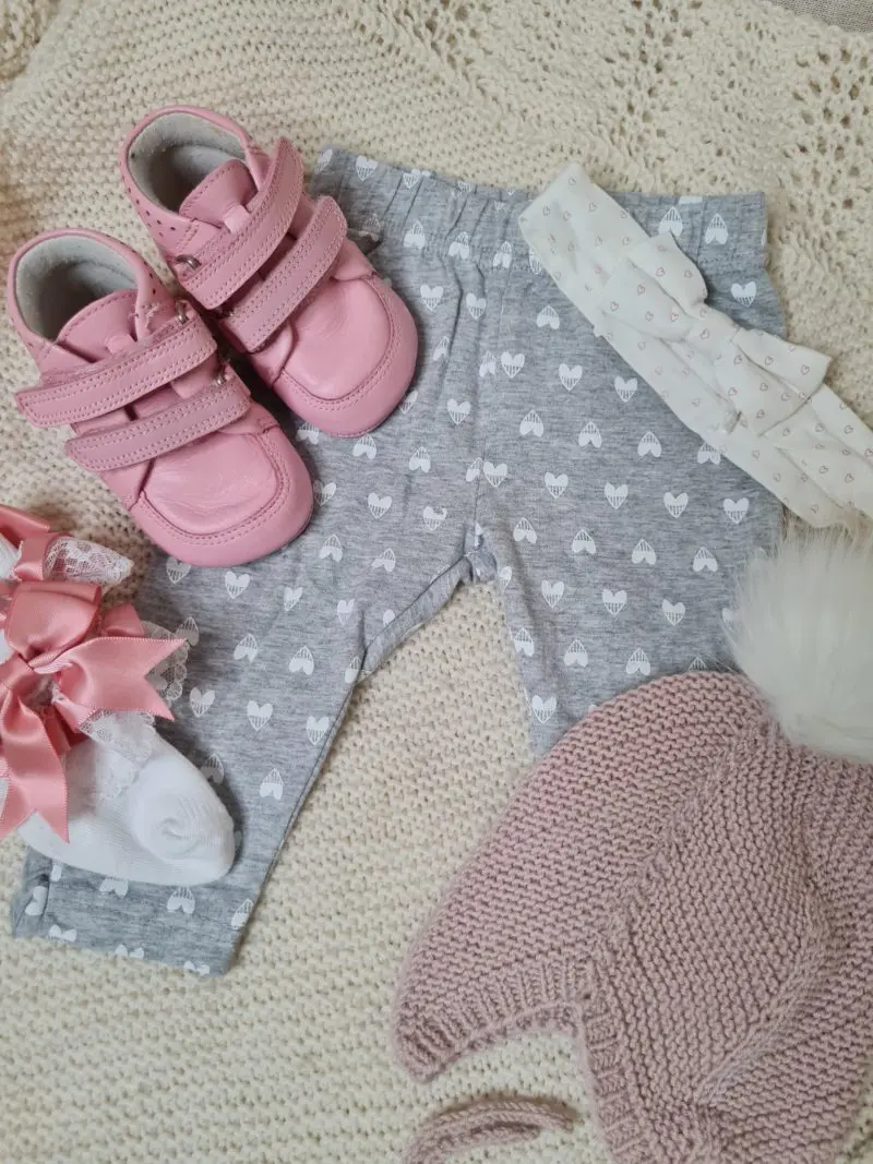 Fullbúinn gjafapakki. Vörur koma í gjafakassa. Pakkinn inniheldur: Buxur í stærð 56/62 frá Babaluno Hárband með slaufu Sokkapar með slaufu og blúndu Heimaprjónuð húfa með dúsk, stærð 0-12 mánaða Skór frá Bundgaard í stærð 17