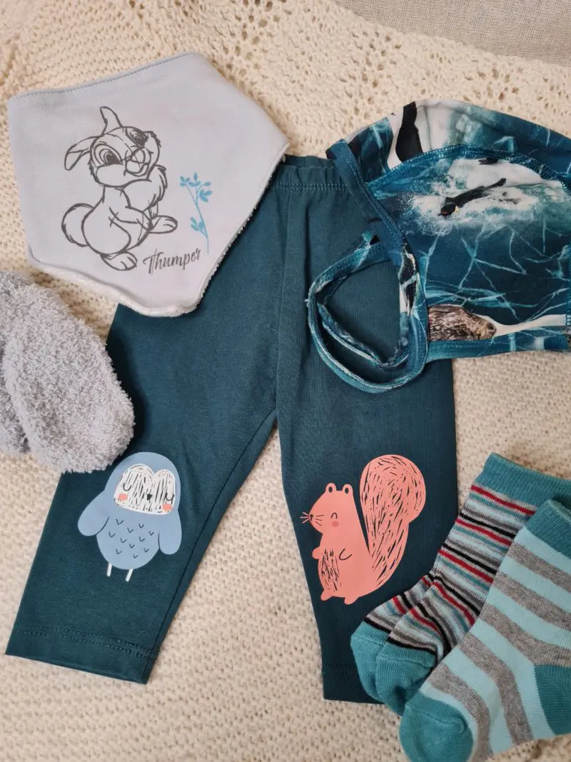 Fullbúinn gjafapakki Pakkinn inniheldur: Buxur frá 5,10,15 BABY í stærð 62 Húfa frá Molo stærð 0-3 mánaða Vettlingar ónotaðir, merktir one size, sirka 0-6 mánaða Tvenn Sokkapör Smekkur